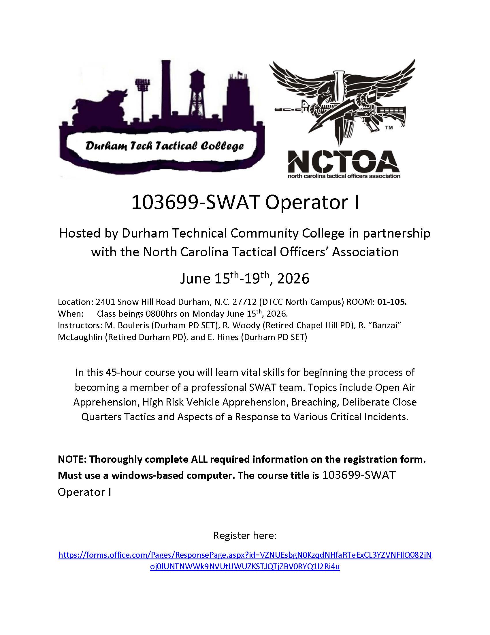 Host Agency: Wake County Sheriff’s Office Class Info POC: 800-347-1200 Opt Training products.training@safariland.com